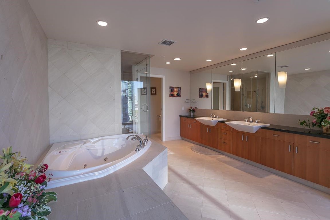 This stunning 3647 square foot condo will knock your socks off! Boasting 3 bedrooms and 3.5 bathrooms, this Coal Harbour pad has breathtaking 270 degree ocean views, so you can enjoy unobstructed vistas to the North, East and West on not one, but two balconies. Cook yourself a fancy dinner in the impressive chef’s kitchen and finish your day relaxing in the grand ensuite, featuring a double steam shower and jetted tub. With secure parking, lots of storage and a full sized laundry room, this spectacular condo has everything you could desire, with stunning views to boot!