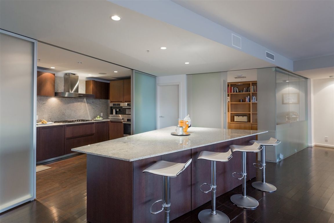 This luxury listing, located in the Farimont Pacific Rim Residences is sure to draw you in! With an incredible view over the Coal Harbour waterfront, this 2321 square foot condo boasts 2 bedrooms and 2.5 bathrooms. Luxury oozes from the hardwood flooring, granite and marble features and high ceilings. Spend your afternoons relaxing on the terrace, taking in the stunning views and enjoying this modern oasis.
