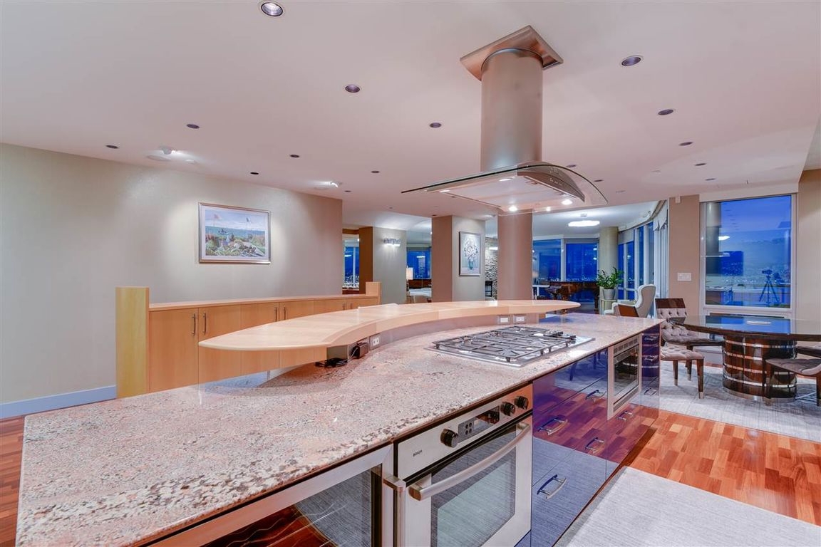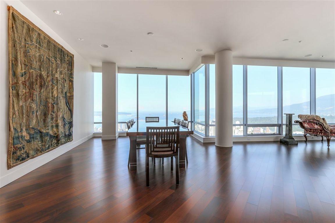 This gorgeous 2681 square foot, 2 bedroom, 2.5 bathroom condo is sure to take your breath away! Located on the 49th floor of the Shangri-La Private Estates, this corner home provides unobstructed views of English Bay, Stanley Park and the North Shore Mountains, which can be enjoyed from the spacious terrace. Enjoy the convenience of 5-star hotel amenities including a spa and resteraunt.