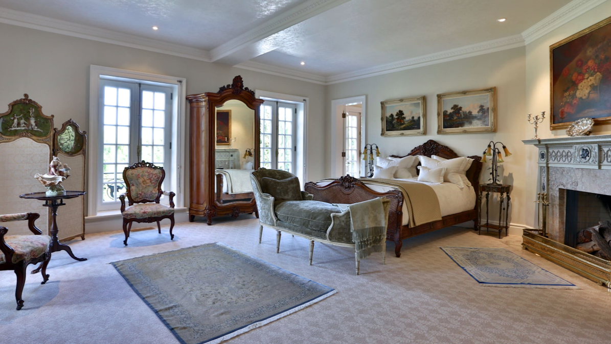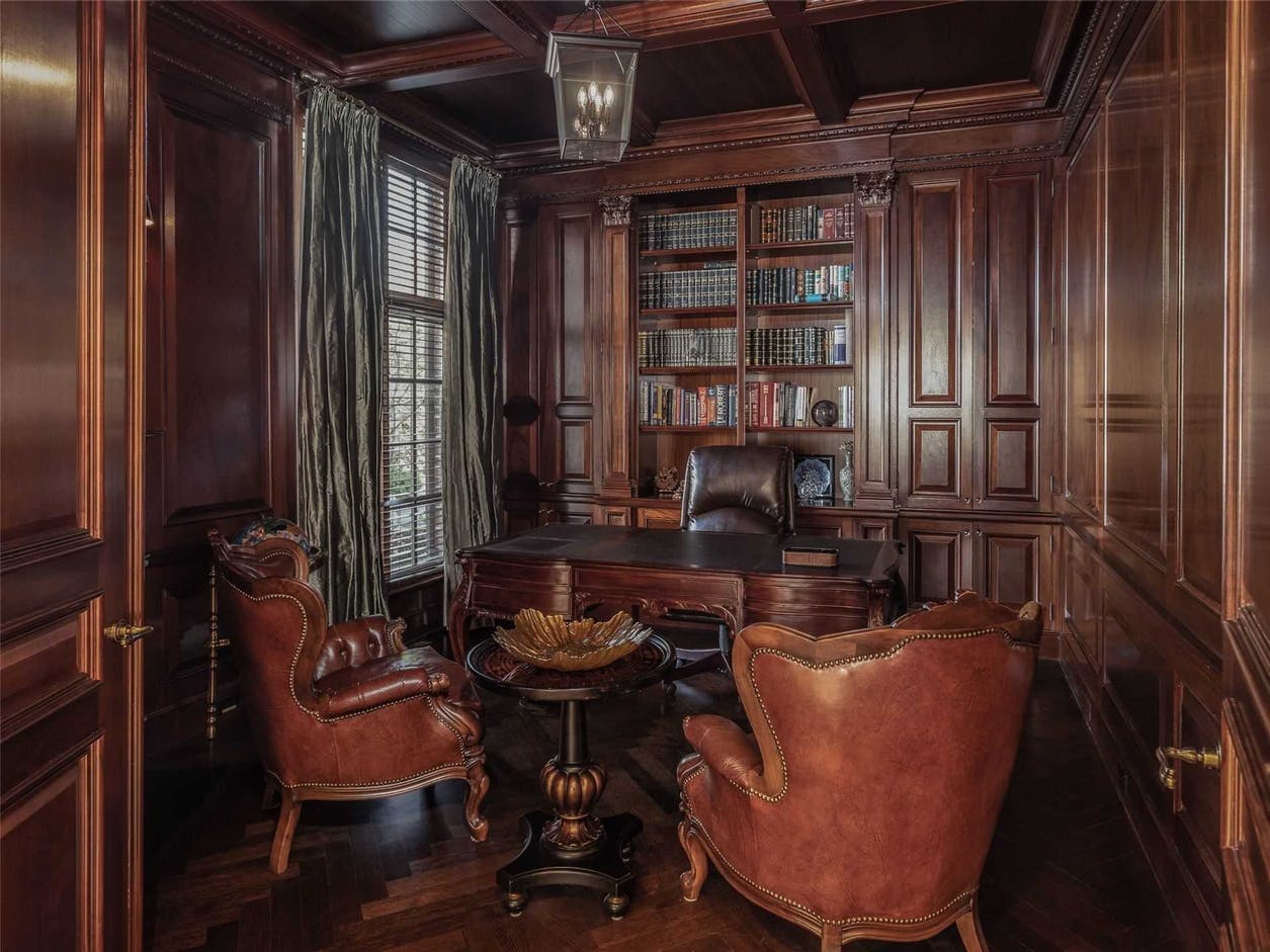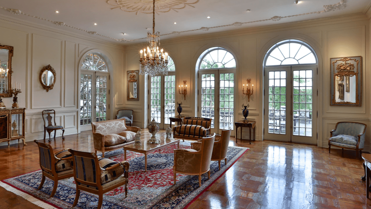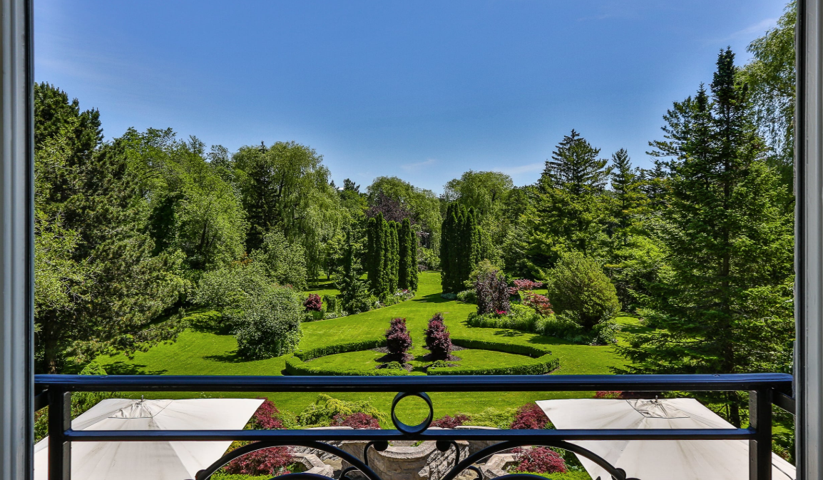 While we don’t know what the asking price of this gated French chateau is, we can tell you the property tax are around $84,000 per year. The home sits of a four-acre ravine lot on The Bridle Path and features 25,875 sq. ft. of living space, nine bedrooms, 10 bathrooms, a ballroom, two-storey 50-ft. pool, 18th-Century period French onyx and marble Louis XV & XVI fireplace mantles.