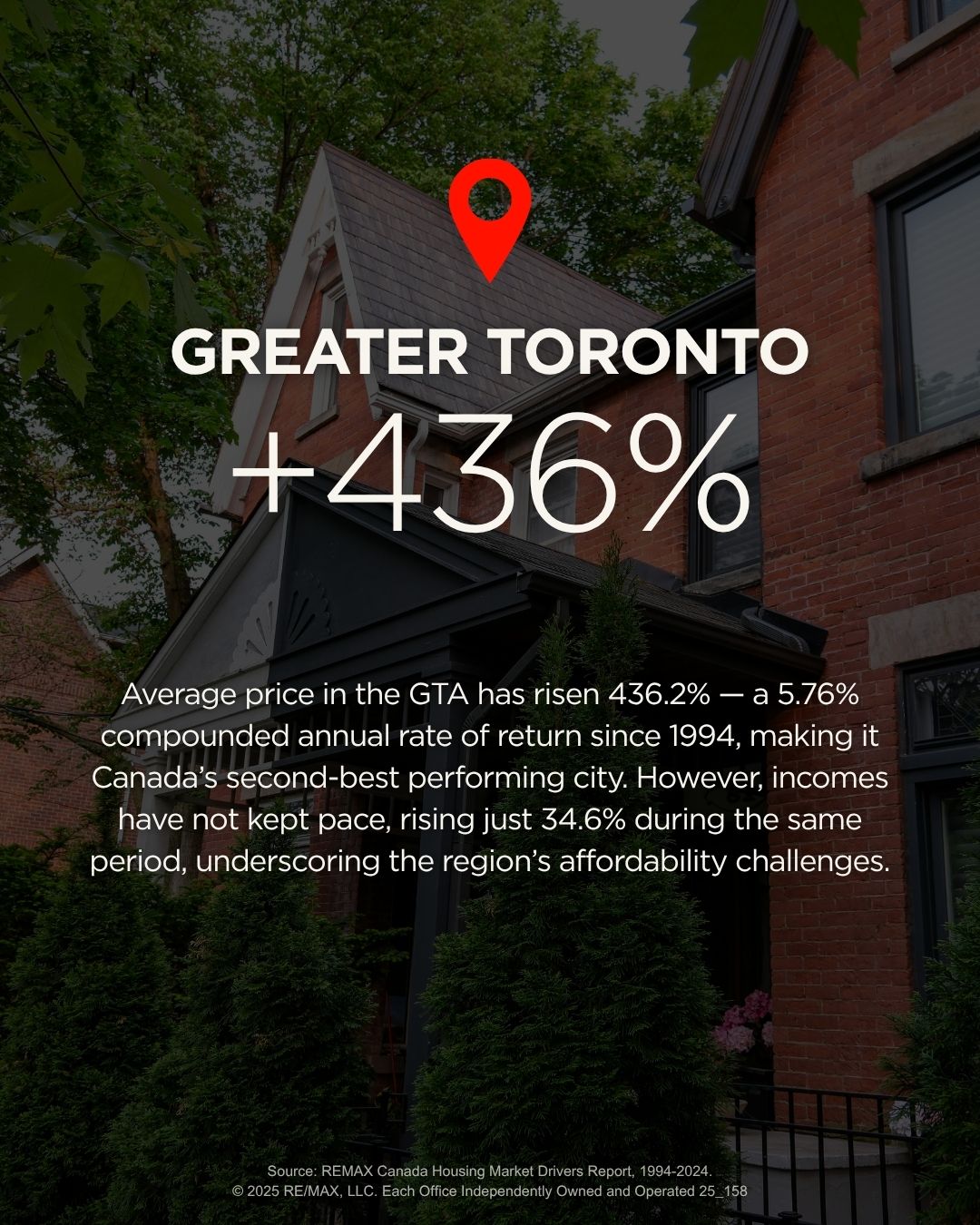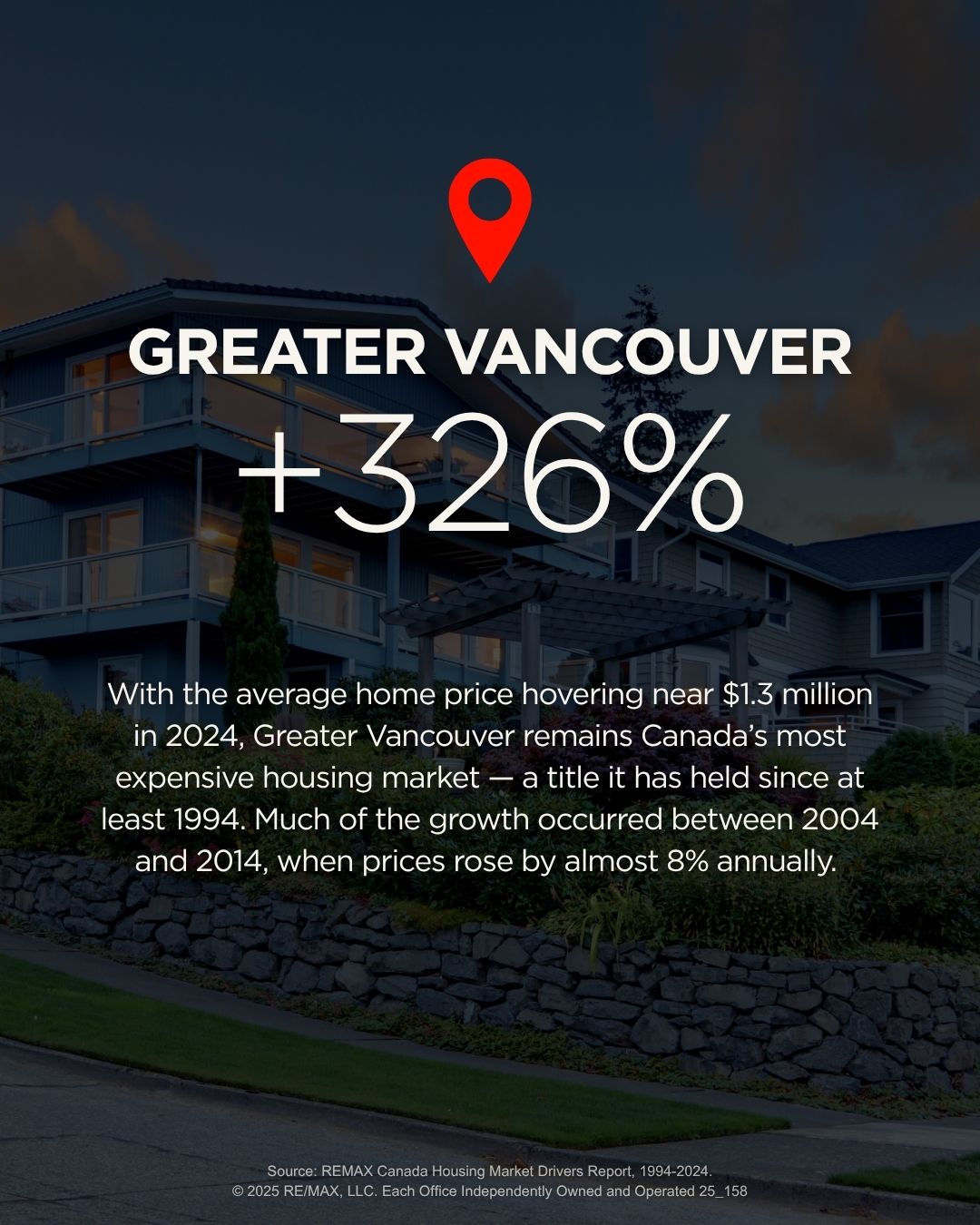 Canadians who bought their houses 30 years ago are reaping the benefits of some serious equity gains, although they, too, faced their own challenges when entering the market. As outlined in the REMAX report, every major market analyzed saw steady appreciation in home values despite recessions, interest rate hikes, and policy shifts.