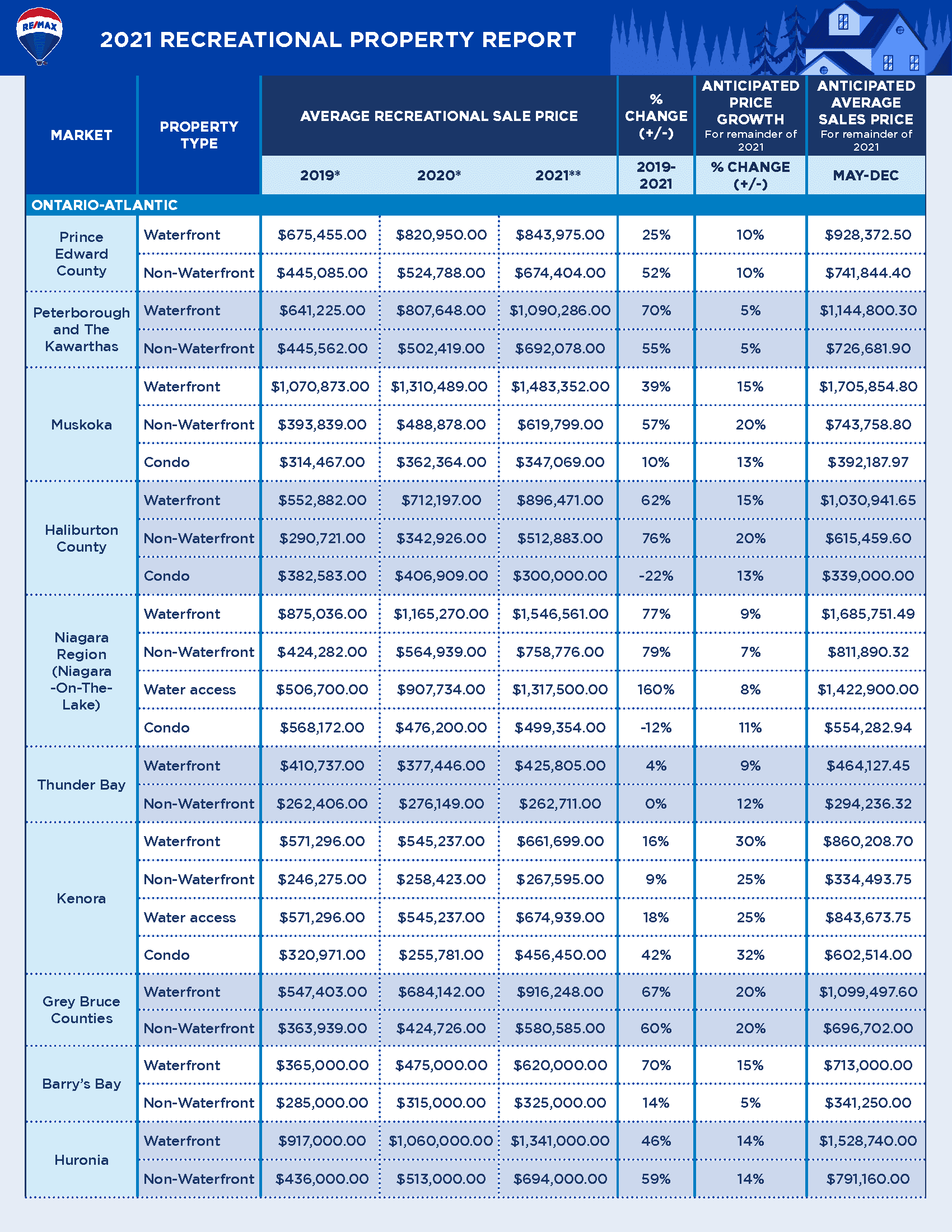 The influx of out-of-town buyers into Ontario’s recreational property markets has impacted local conditions, with some markets seeing an increase in average price in the triple digits between 2019 and April of 2021.