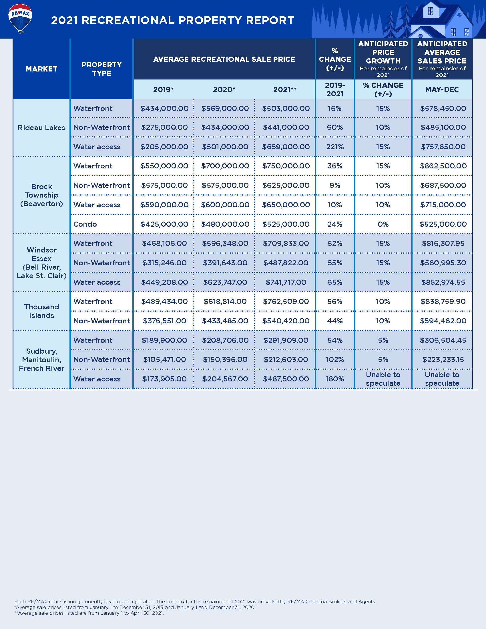 The influx of out-of-town buyers into Ontario’s recreational property markets has impacted local conditions, with some markets seeing an increase in average price in the triple digits between 2019 and April of 2021.