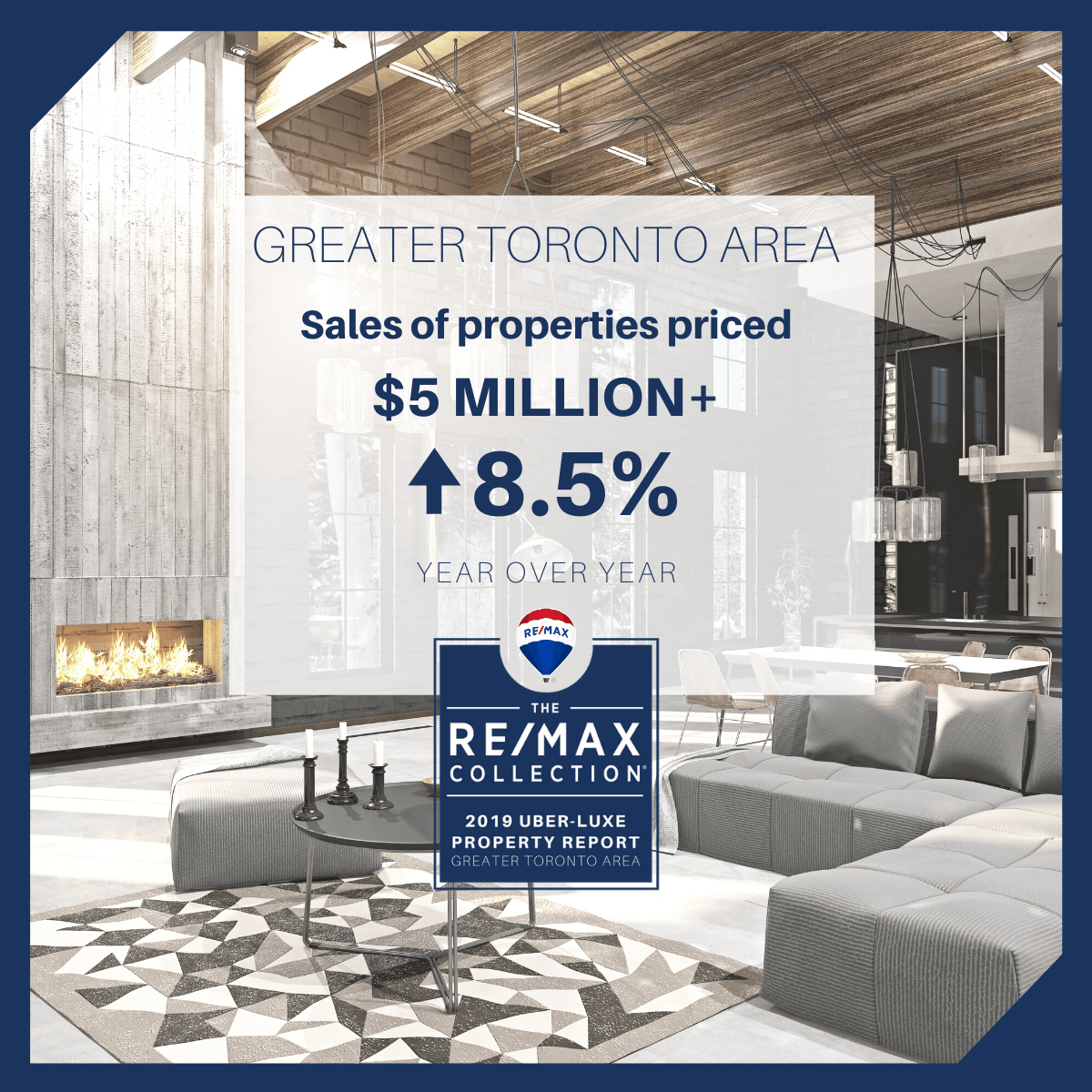 “The one consistency in luxury Toronto real estate throughout 2019 has been value – and it’s evident from the bottom end of the market to the top,” says Christopher Alexander, Executive Vice President and Regional Director, RE/MAX of Ontario-Atlantic Canada. “Homebuyers at virtually all price points – including uber-luxe – are kicking the tires once again. As a result, momentum is building in the overall market, which is reflected in the escalation in sales at both the $2 million and $5 million price points.”