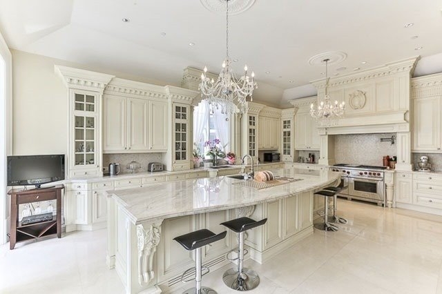 This elegant abode is now on the market for $8.27 million, and is definitely one of the most luxurious houses for sale in Toronto right now. The sprawling west-end mansion boasts 5,000 sq. ft. with five bedrooms, seven baths, an extensive media room in the basement, a huge underground garage, and a resort-style backyard. It’s literally an entertainer’s dream. See the listing here.