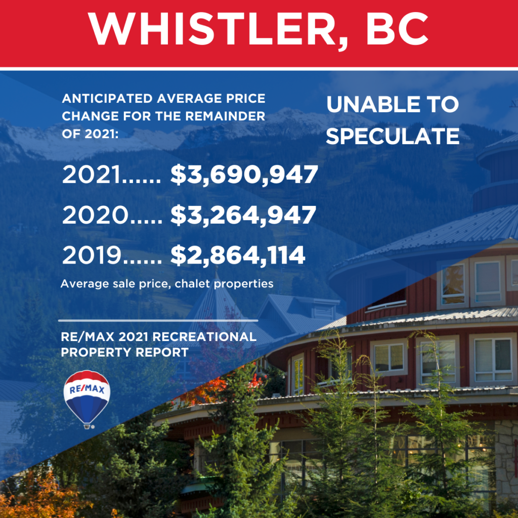 The red-hot demand seen across the Whistler real estate market is a common thread across Canada, as interest and activity in suburban and rural property markets continues to grow. Despite rising demand, 57 per cent of Canadian recreational markets still have at least one property type with average prices below $500,000, according to the 2021 RE/MAX Recreational Property Report.