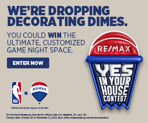 *No Purchase Necessary. Legal Canadian residents, excluding Quebec. 21+. Other eligibility restrictions apply. Sweepstakes Period: October 25, 2022, at 12:00 am EST to November 21, 2022 at 11:59 pm EST. 3 Prizes available to be won. Grand Prize consists of the design of an NBA themed theatre room in the confirmed winner’s home (ARV: $48,000 CAD). **Second prize consists of NBA swag package (ARV: $500 CAD). Third prize consists of NBA swag package (ARV: $500 CAD). Random draw to be conduct on or around November 22, 2022. Selected entrants must be confirmed as winners, including by correctly answering a skill-testing question. Odds depend on number of entries received. Sponsored by RE/MAX Promotions, Inc. Void where prohibited or restricted by law.